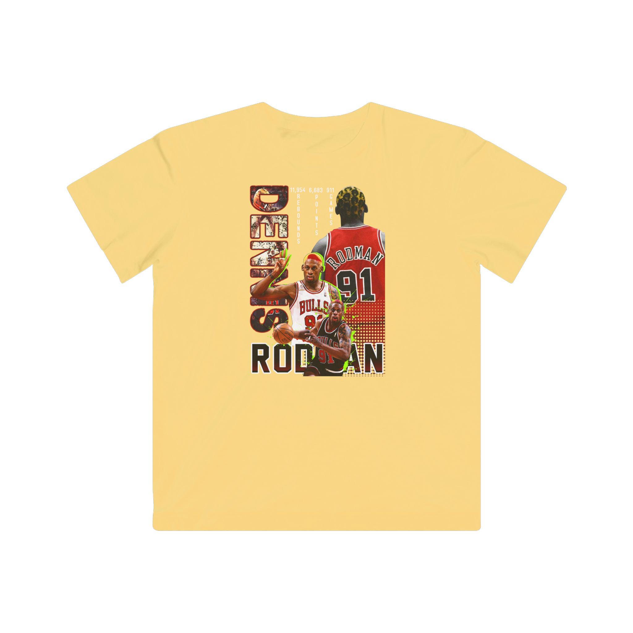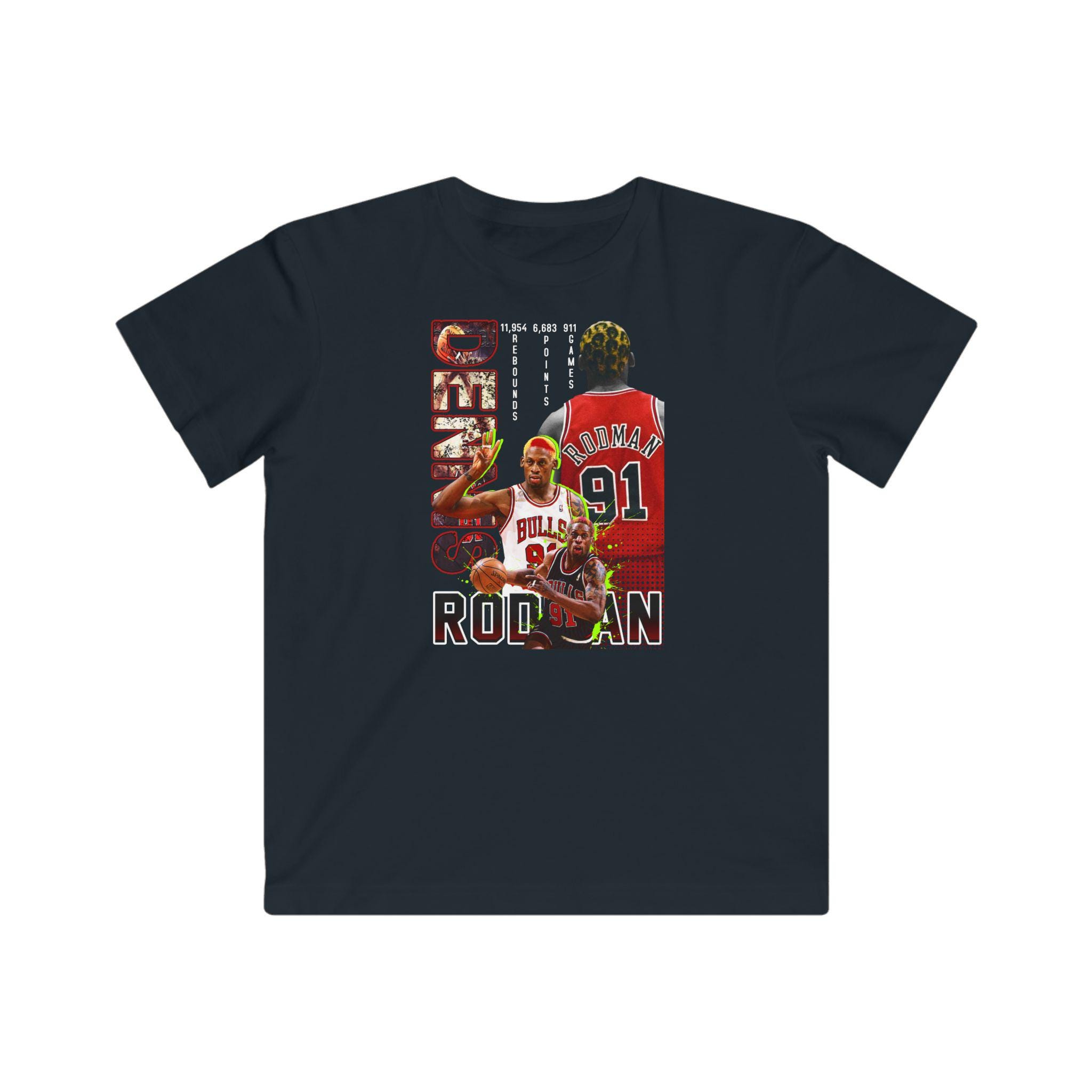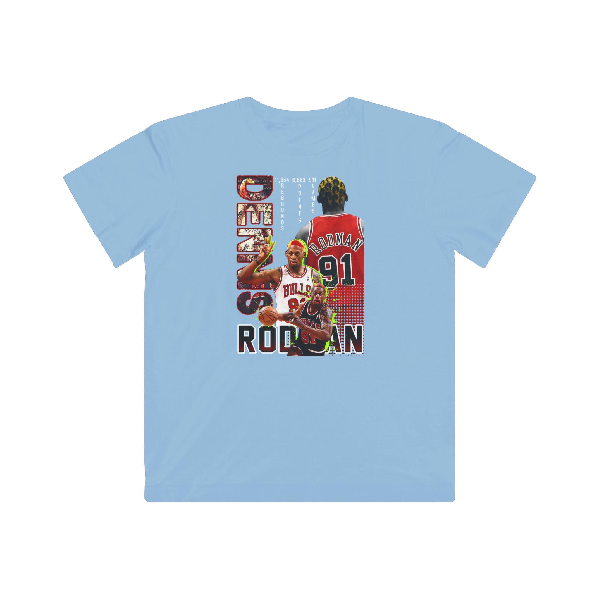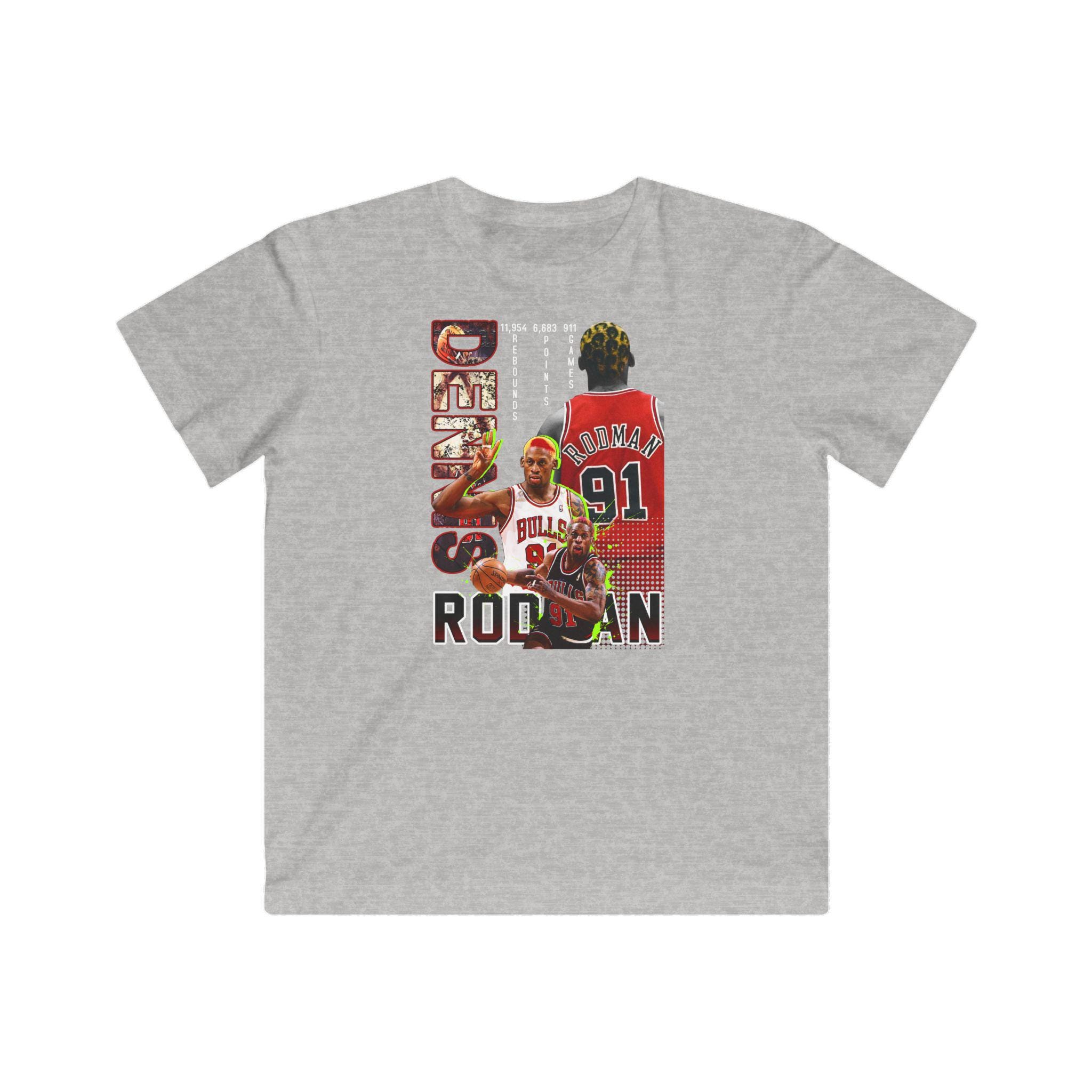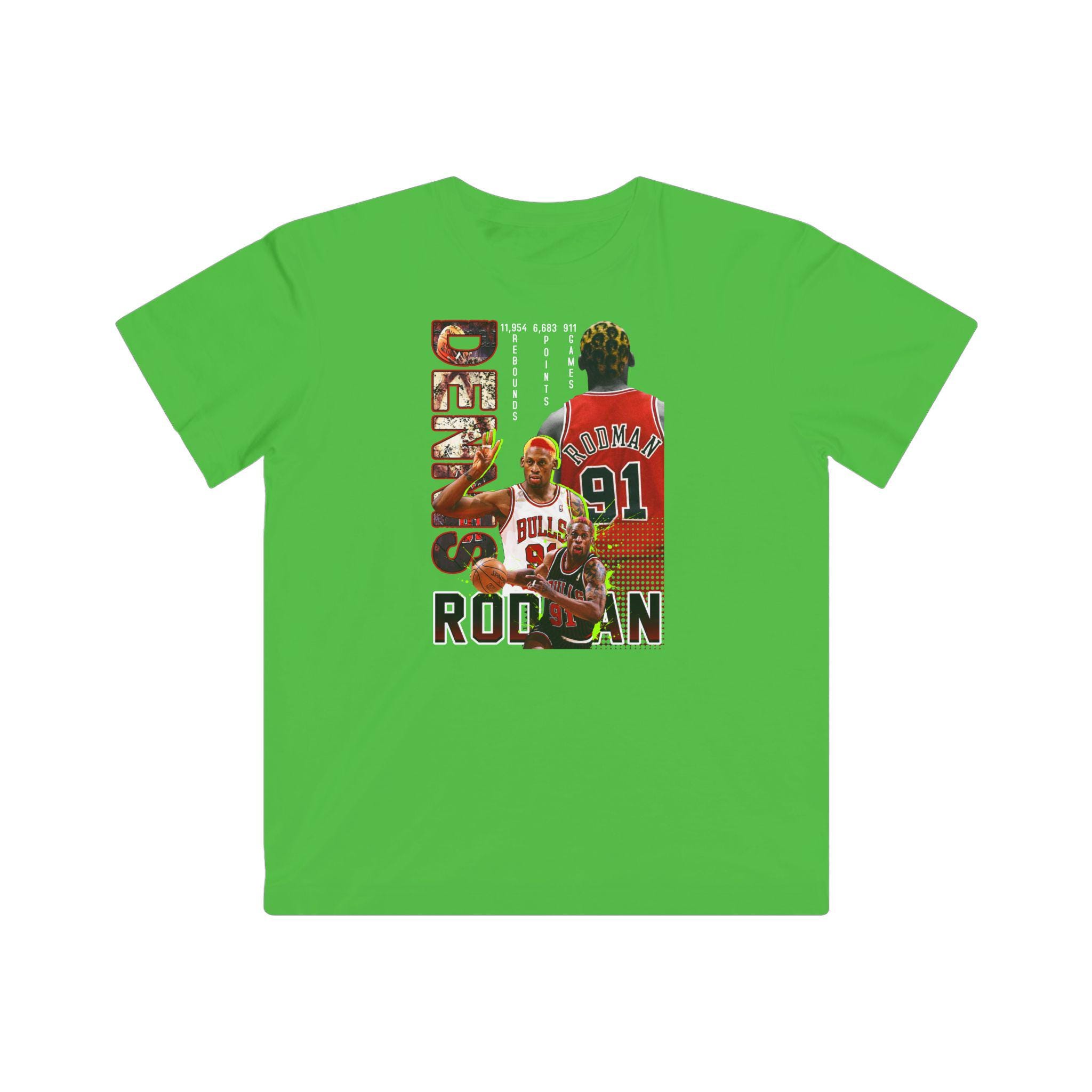Get your little basketball fan geared up in this fine jersey tee featuring basketball legend Dennis Rodman. Perfect for young sports enthusiasts and fans of the iconic player, this tee exudes a cool and athletic vibe. Ideal for birthdays, sports events, or casual wear.